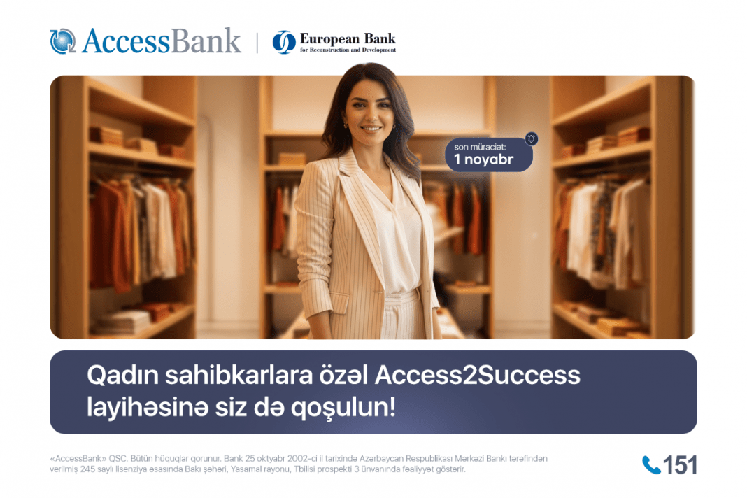 ®Azərbaycanda sahibkarlığın, o cümlədən qadın sahibkarlığının inkişafına hər zaman dəstək olan AccessBank, Avropa Yenidənqurma və İnkişaf Bankı (EBRD) ilə tərəfdaşlıq çərçivəsində Access2Success layihəsinə dördüncü dəfə start verdiyini elan edir.