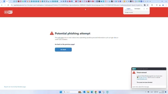 Qalib olduqdan sonra kartı əldə etmək üçün açılan səhifəni kompüterə yüklənmiş antivirus proqramı “Potensial fişinq cəhdi” adlandıraraq, açılmasının qarşısını alır.