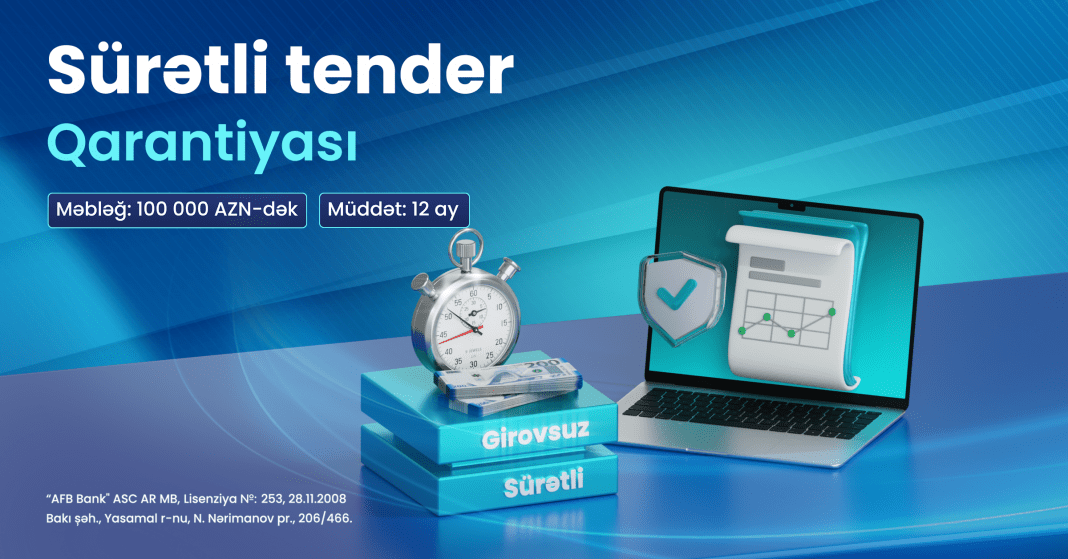 ®AFB Bank sahibkarlar üçün yeni “Sürətli Tender Qarantiyası” məhsulunu təqdim edir. Bu xidmət bizneslərin tender proseslərinə daha operativ qoşulmasını təmin etmək məqsədilə hazırlanıb. Müştərilər girov tələb olunmadan tender qarantiyasını cəmi 1 iş günü ərzində əldə edə biləcəklər.