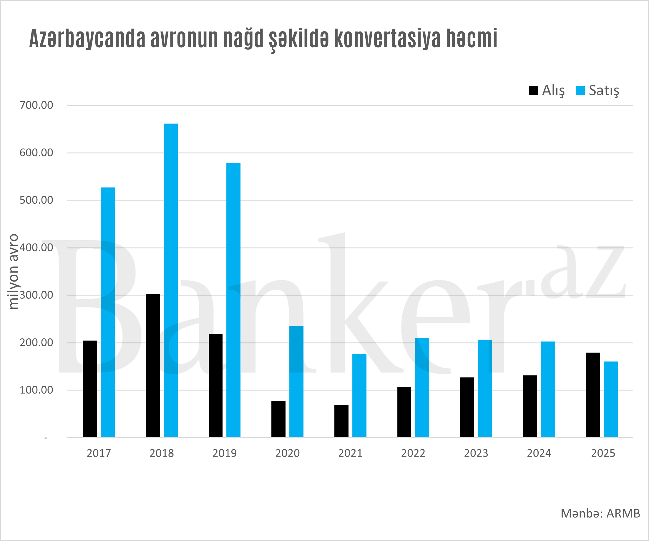 2025-ci ildə Azərbaycanda bankların nağd avro əməliyyatlarında illik müqayisədə kəskin dəyişikliklər qeydə alınıb. Əhalinin nağd avroya marağı əvvəlki illərlə müqayisədə zəifləyib.