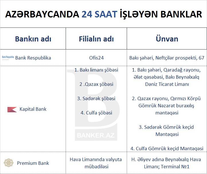 Ölkədə 7 gün 24 saat fasiləsiz xidmət göstərən banklar bunlardır: