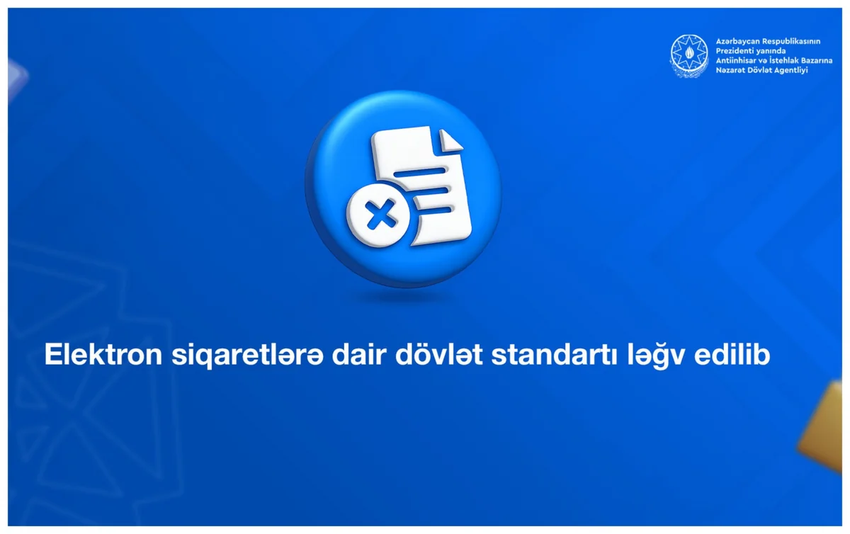 Prezident yanında Antiinhisar və İstehlak Bazarına Nəzarət Dövlət Agentliyinin tabeliyində olan Azərbaycan Standartlaşdırma İnstitutu (AZSTAND) AZS 941:2023 “Elektron siqaret məhsulları. Ümumi texniki şərtlər” dövlət standartını ləğv edib.