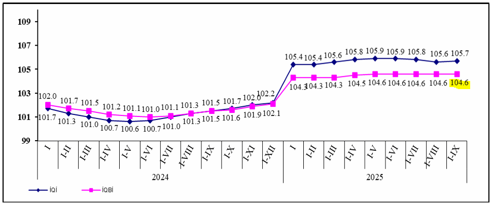 2025-ci ilin sentyabr ayında avqustla müqayisədə 1,8 faiz, 2025-ci ilin yanvar-sentyabr aylarında əvvəlki ilin müvafiq dövrü ilə müqayisədə isə 6,7 faiz təşkil etmişdir.