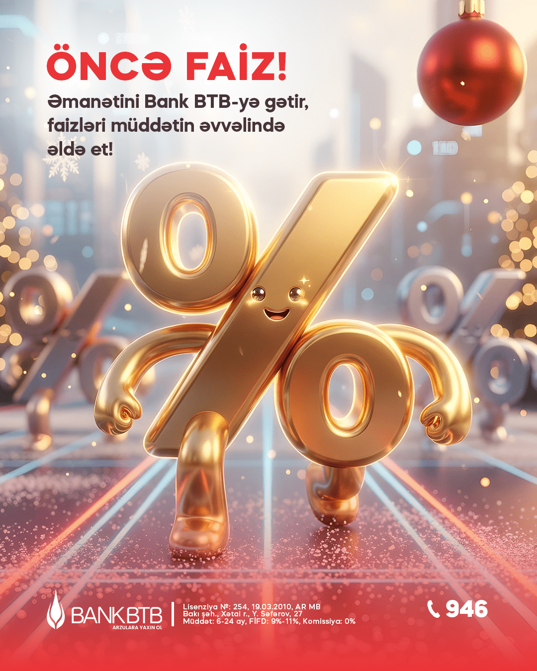 Əmanət yerləşdirilən tarixdə müddətə uyğun olaraq hesablanmış faiz məbləği əvvəlcədən ödənilir ki, bu da hər kəsə gəlirdən dərhal istifadə etmək imkanı yaradır. Kampaniya 31 yanvar 2026-cı il tarixinədək qüvvədədir.