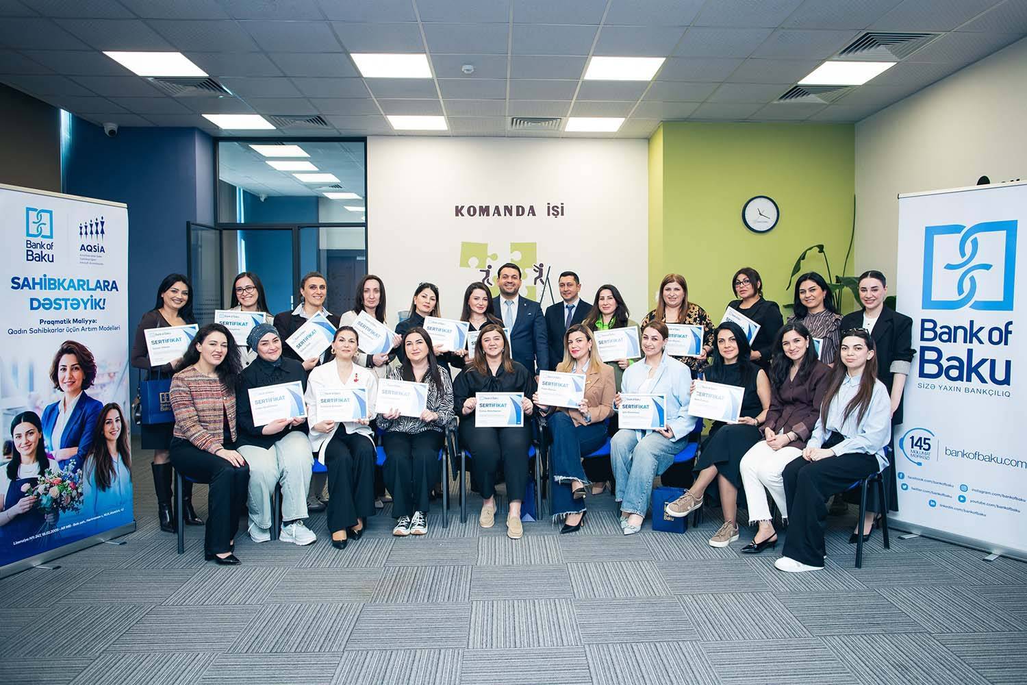 “25 Aprel – Sahibkarlar Günü” ərəfəsində Bank of Baku-nun təşkilatçılığı və Azərbaycanda Qadın Sahibkarlığının İnkişafı Assosiasiyasının (AQSİA) dəstəyi ilə keçirilən təlimdə 20-dən çox sahibkar qadın iştirak edib. “Praqmatik Maliyyə: Qadın Sahibkarlar üçün Artım Modelləri” mövzusunda keçirilən təlimin əsas məqsədi qadın sahibkarlar arasında maliyyə savadlılığını artırmaq və bizneslərin dayanıqlı inkişafına töhfə verməkdir.