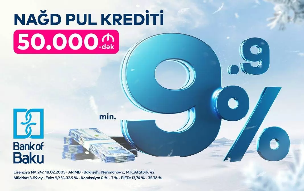 Min. 9.9% faiz ilə 50.000 AZN-dək krediti linkə daxil olaraq birbaşa sifariş edə bilərsiniz: https://bob.az/3OzZRC4