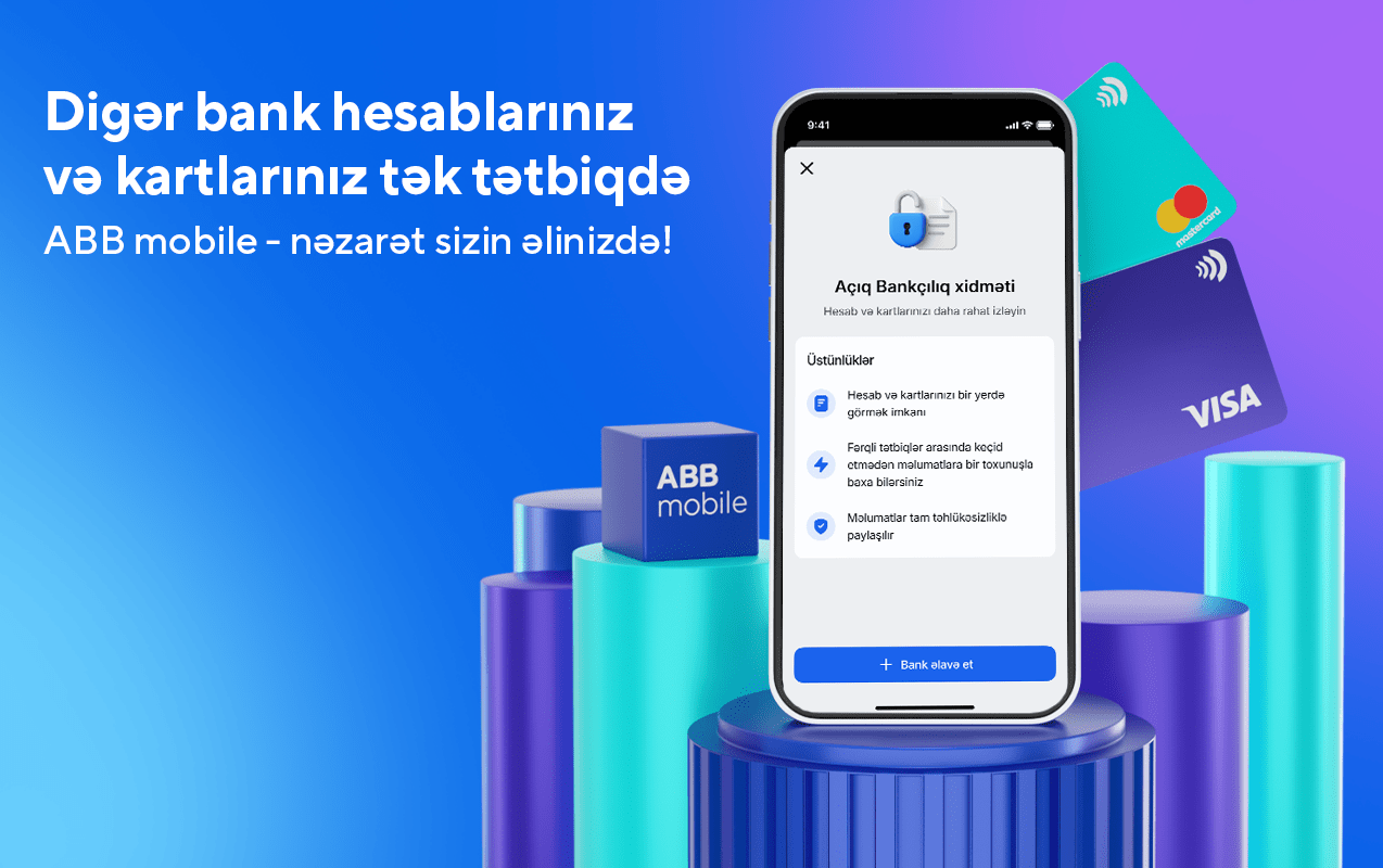 ®ABB mobile tətbiqi ilə bankçılıqda yeni dövr başlanıb. Açıq bankçılığa qoşulmuş digər bankların müştəriləri də artıq öz hesablarını və kartlarını ABB mobile-da izləmək imkanı əldə ediblər. Bu, müştərilərə daha rahat, mərkəzləşdirilmiş və asanlıqla nəzarət edilə bilən bankçılıq təcrübəsi yaradır.
