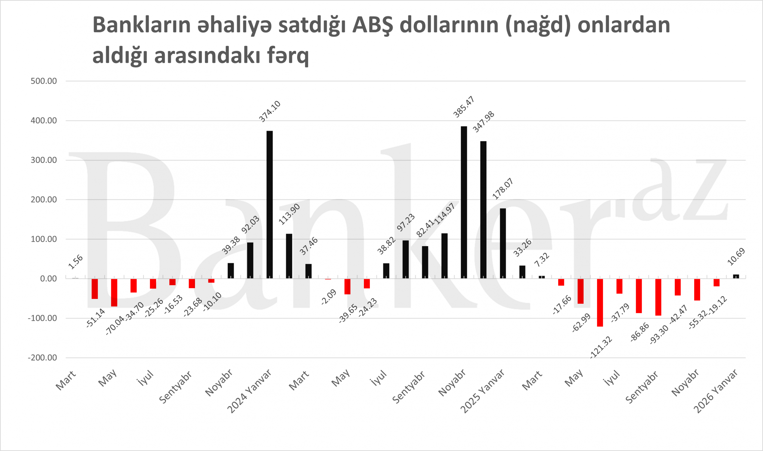 Nəticədə yanvarda banklardan əhali tərəfə nağd xalis 10.1 mln. dollar axın olub.