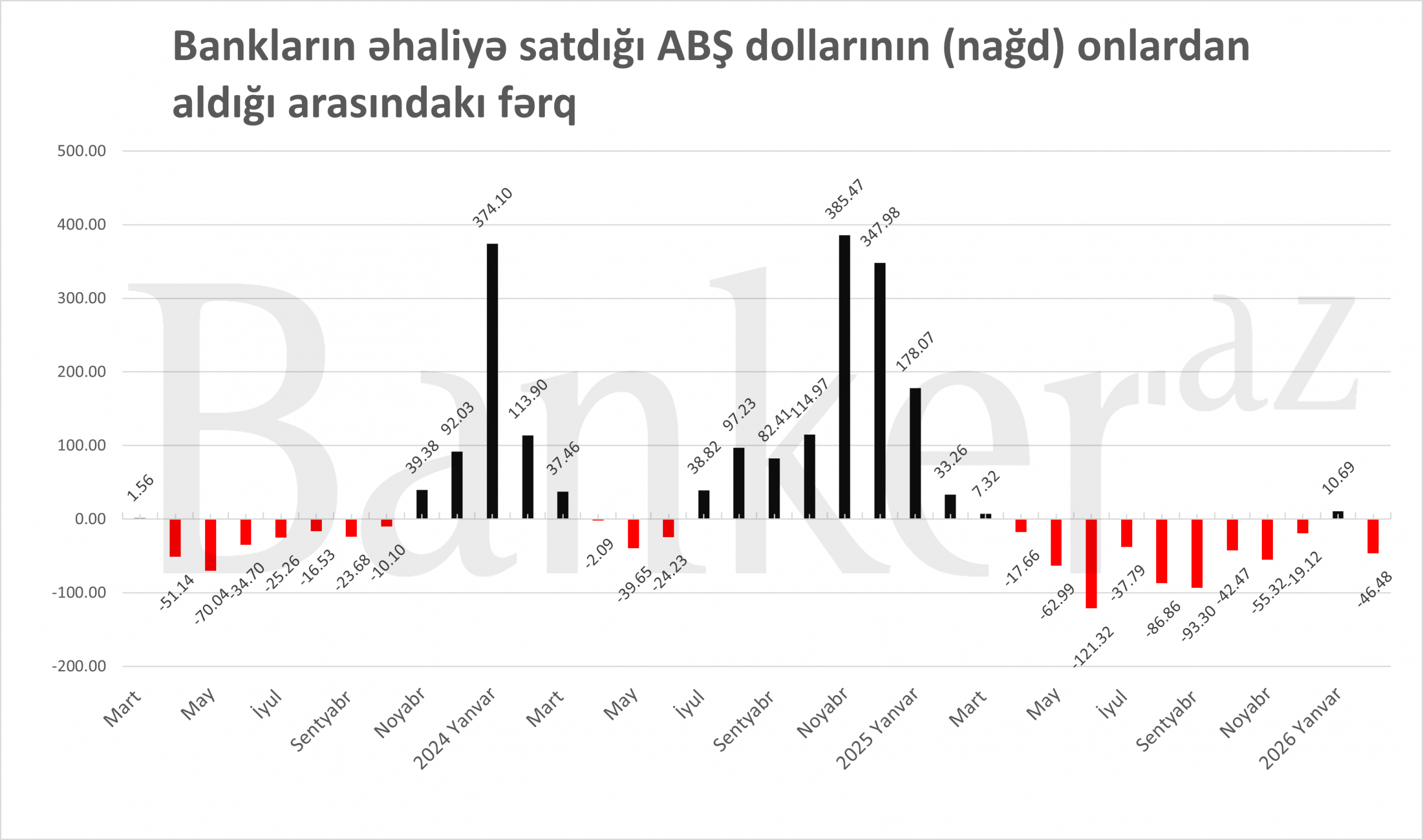 Keçək rəsmi və statistik tərəfinə. İlk öncə dünən Mərkəzi Bank uçot faiz dərəcəsinə dair iclasında bu məsələyə bir daha aydınlıq gətirərək bildirdi ki, valyuta bazarında vəziyyət stabil olaraq qalıb. 2026-cı ilin yanvar-fevral aylarında mübadilə şöbələri tərəfindən nağd xarici valyutanın alışı satışını 51 mln. ABŞ dolları üstələyib. Əslində öncəki yazılarımızda da buna aydınlıq gətirmişdik. Ölkədə ilin ilk başlanğıcında adətən bankların əhaliyə nağd dollar satışları onlardan alınanları xeyli üstələyridisə, bu il bu fond istiqamət 180 dərəcə dəyişib. İndi əhali tərəfdən banklara və valyuta dəyişmə məntəqələrinə nağd dolları manata çevirmək üçün gələnlər artıb. Müqayisə üçün əlavə edək ki, 2024-cü ilin ilk iki ayında banklardan əhali tərəfə (yəni əks) nağd 488 mln. dollar, 2025-ci ilin eyni dövründə isə 211.3 mln. dollar axın olmuşdu. (şəkil 2)