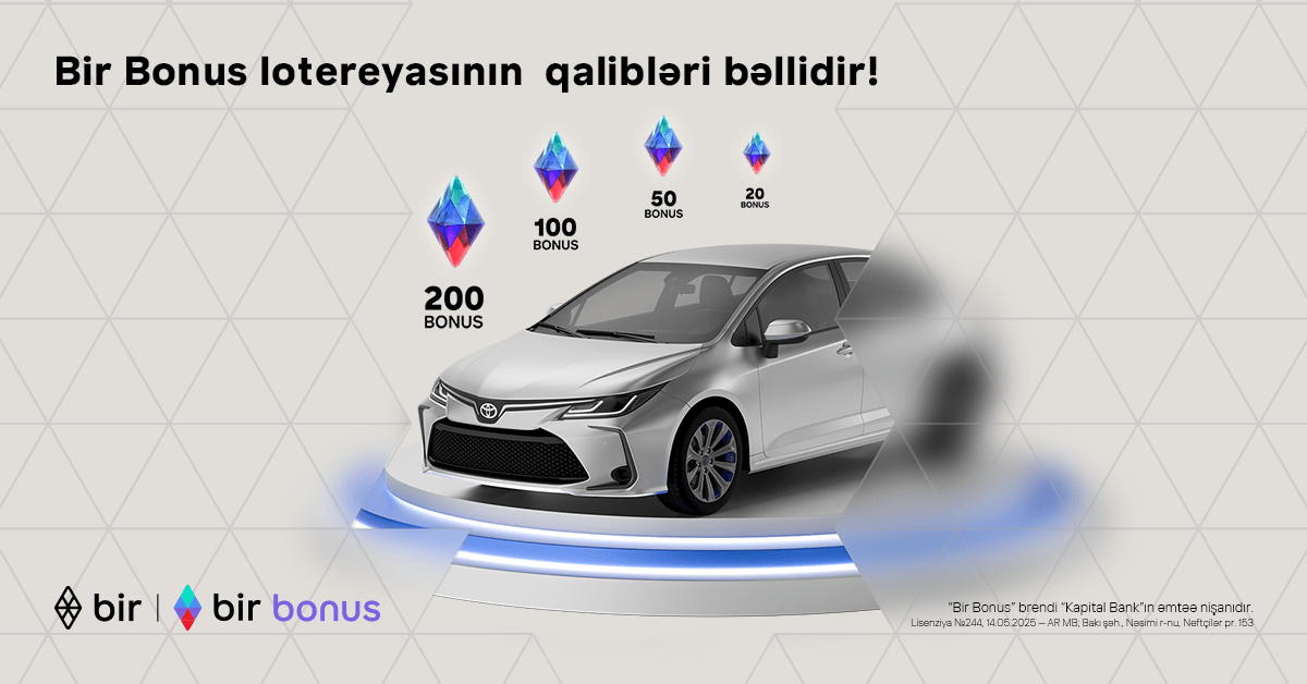 ®Bir ekosistemin elan etdiyi Bir Bonus lotereyası yekunlaşıb. 1 oktyabr-15 noyabr tarixlərini əhatə edən lotereyada Birbonus.az saytında mobil nömrəsini yazaraq qeydiyyatdan keçən müştərilər iştirak şansı qazanıblar. Lotereyanın unikallığı ondan ibarət idi ki, burada həm bonus qazananlar, həm də xərcləyənlər iştirak edirdilər.