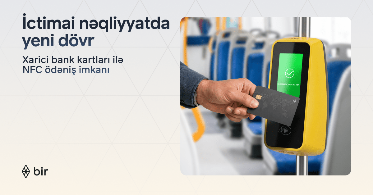 ®Qafqazın bankçılıq, ödəniş sistemləri və elektron ticarəti özündə birləşdirən ilk tam rəqəmsal inteqrasiya olunmuş ekosistemi olan Bir, ictimai nəqliyyatda xarici emissiyalı bank kartları ilə təmassız əsaslı ödəniş (NFC) imkanını istifadəyə verib.