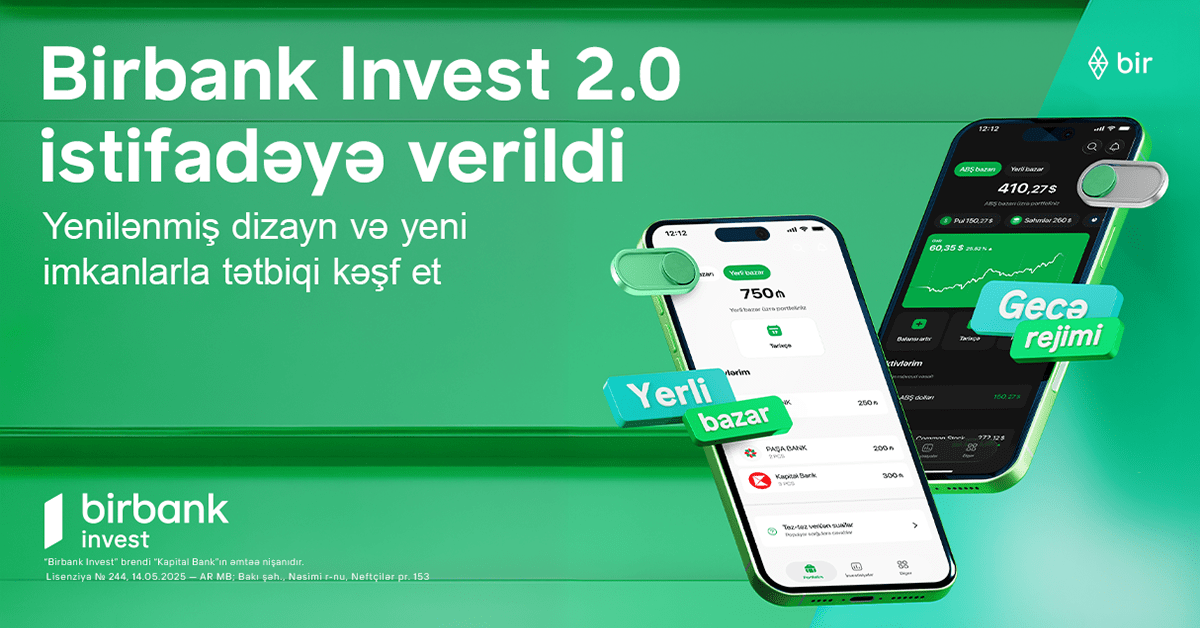 ®Azərbaycanın bank tərəfindən təqdim olunan ilk müstəqil investisiya tətbiqi Birbank Invest-in 2.0 versiyası istifadəyə verildi. Yenilənən platforma istifadəçilərə yerli və qlobal kapital bazarında daha geniş investisiya imkanları, təkmilləşdirilmiş interfeys və informativ qərarvermə üçün güclü alətlər təqdim edir.