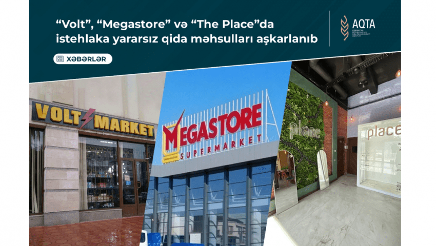 Azərbaycan Qida Təhlükəsizliyi Agentliyinin (AQTA) əməkdaşları Bakı şəhərinin Nəsimi rayonu, X.Şuşinski küçəsində yerləşən, “Volt Services Azərbaycan” MMC-yə məxsus “Volt” marketdə, Nərimanov rayonu, A.Alı küçəsində yerləşən, “Grand-Mart” MMC-yə məxsus “Megastore” ticarət obyektində, Nəsimi rayonu, C.Məmmədquluzadə küçəsində yerləşən, “Our Company” MMC-yə məxsus “The Place” ictimai iaşə obyektində yoxlama keçirib.