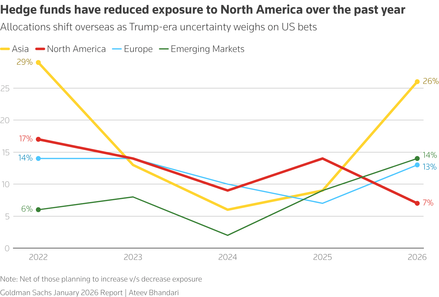Hedc-fondlar isə ticarət gərginliyi və siyasət qeyri-müəyyənliyi səbəbindən Şimali Amerika aktivlərindən geri çəkilirlər.