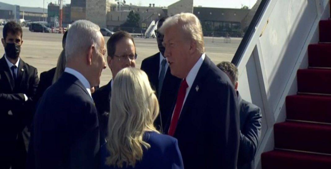 Banker.az xəbər verir ki, Trampı Ben-Qurion hava limanında İsrailin Prezidenti və Baş naziri qarşılayıb.