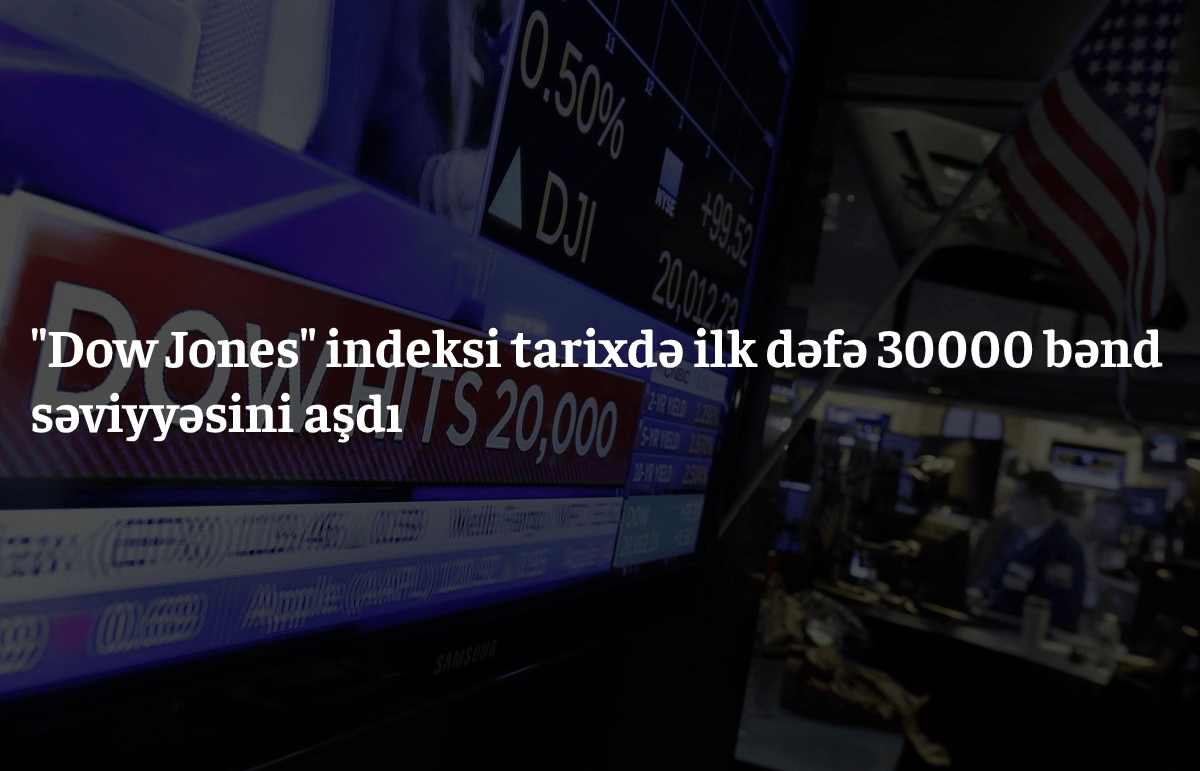 “Dow Jones Industrial Average” indeksi tarixdə ilk dəfə 30000 bənd səviyyəsini aşıb.
