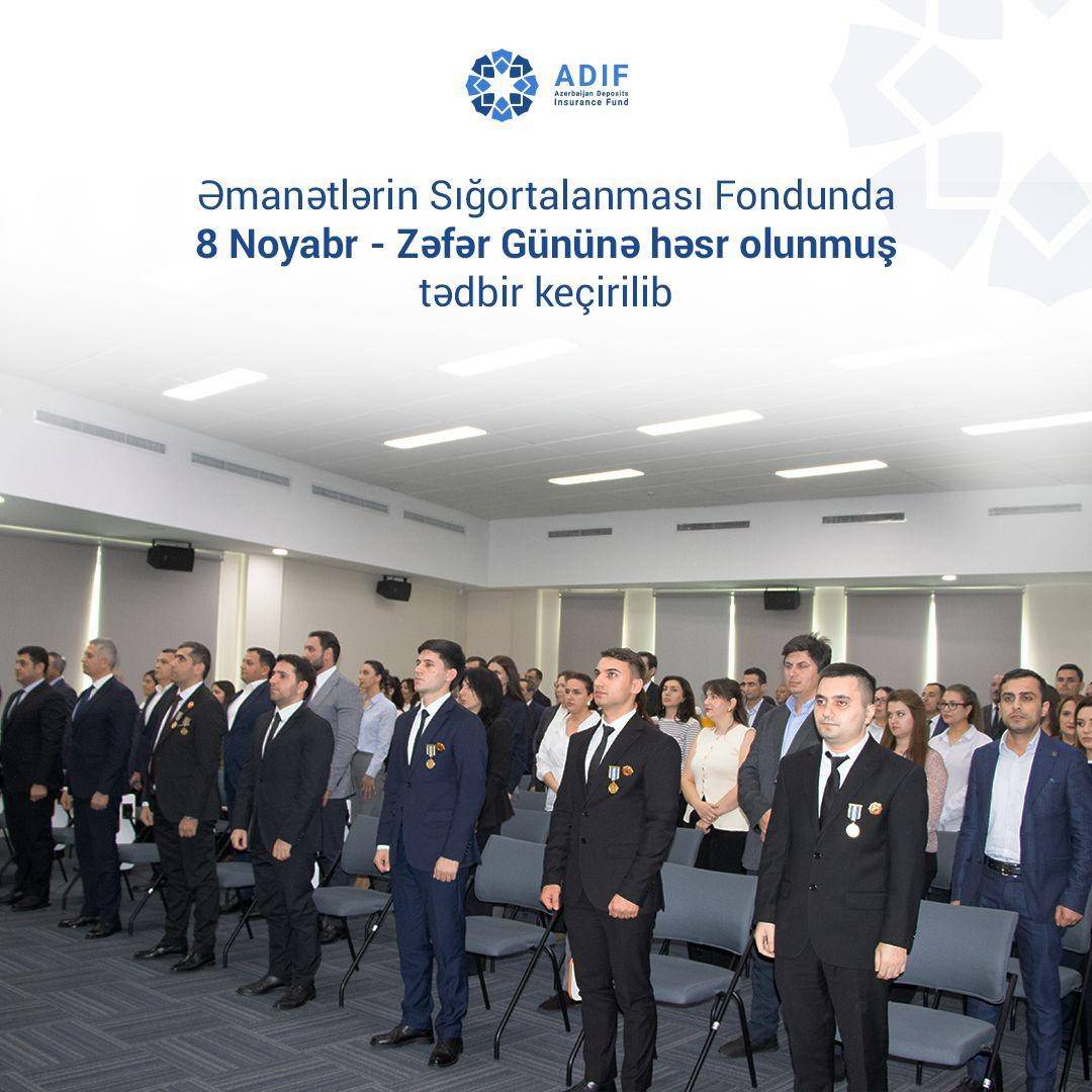 ®8 Noyabr – Zəfər Günü münasibətilə Əmanətlərin Sığortalanması Fondunda (ƏSF) təntənəli tədbir keçirilmişdir. Zəfər Günü Azərbaycan Respublikasının dövlətçilik tarixində xüsusi yerə malik olan, xalqımızın milli iradəsini, dövlət-xalq birliyini və qəhrəman Ordumuzun qüdrətini bütün dünyaya nümayiş etdirən qürur günüdür. 2020-ci ilin payızında Müzəffər Ali Baş Komandan cənab İlham Əliyevin rəhbərliyi ilə Azərbaycan Ordusunun 44 gün davam edən Vətən müharibəsində qazandığı parlaq qələbə nəticəsində ölkəmizin ərazi bütövlüyü təmin edilmiş, torpaqlarımız işğaldan azad olunmuşdur. Bu tarixi hadisə Azərbaycan xalqının azadlıq, ədalət və milli qürur hissi uğrunda apardığı mübarizənin möhtəşəm təntənəsi olmuşdur.