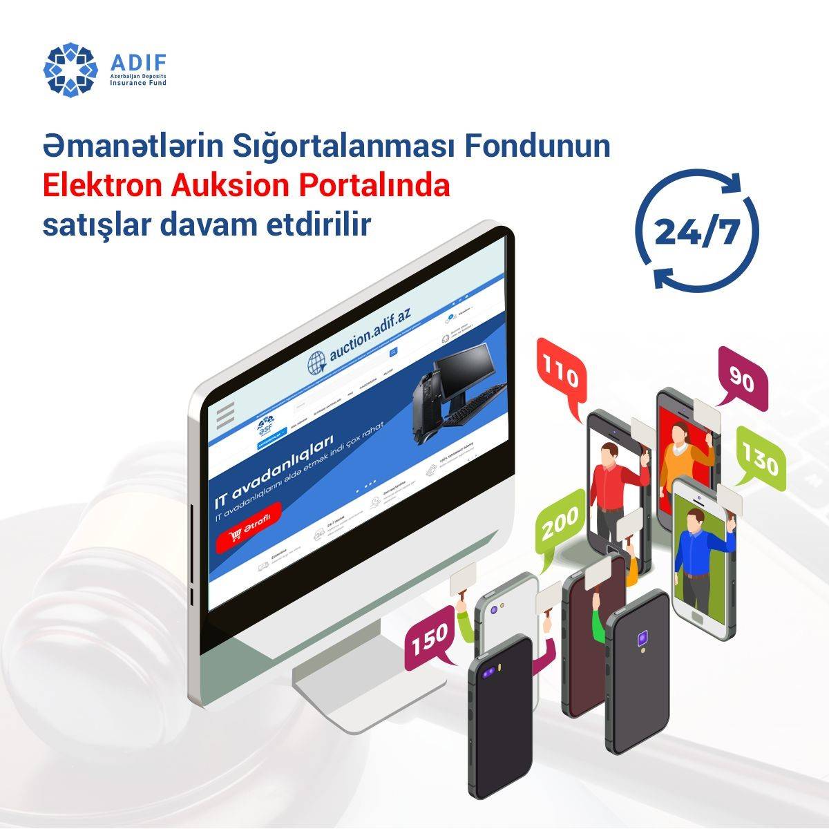 Əmanətlərin Sığortalanması Fondu tərəfindən yaradılmış Elektron Auksion Portalı (auction.adif.az) vasitəsilə ləğv prosesində olan bankların balansında mövcud daşınar əmlakların satışı davam etdirilir. Portal açıq, şəffaf və rəqabətli satış mexanizmi təqdim etməklə həm fiziki, həm də hüquqi şəxslər üçün əlçatan alış mühiti yaradır.