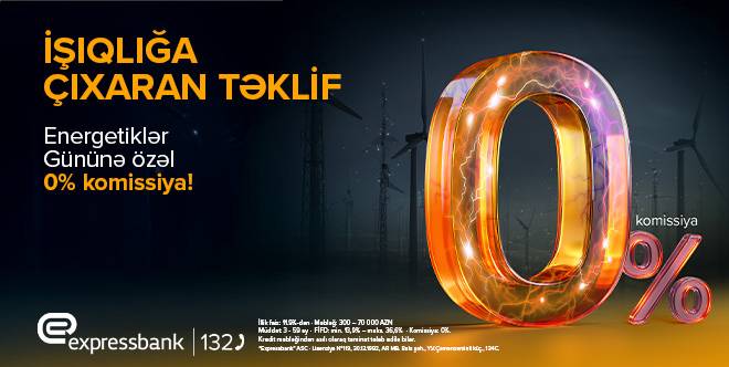 ®Expressbank Energetiklərin Peşə Bayramı ərəfəsində onlara özəl olaraq nağd pul kreditini KOMİSSİYASIZ etdi!