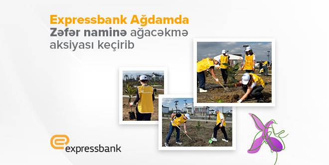 ®Expressbank sosial məsuliyyət strategiyasına sadiq qalaraq “Təbiətə qayğı – Gələcəyə miras” layihəsi çərçivəsində həyata keçirdiyi ənənəvi ağacəkmə aksiyasını bu il “Zəfər naminə!” şüarı altında 44 Günlük Vətən Müharibəsindəki zəfərimizin 5-ci ildönümünə həsr edib. Zəfər Günü münasibətilə keçirilən bu aksiya Ağdam, Füzuli və Xocavənd rayonlarında Azərbaycan Prezidentinin xüsusi nümayəndəliyinin dəstəyi ilə Expressbank əməkdaşları tərəfindən Ağdamın Sarıcalı kəndində təşkil edilib.