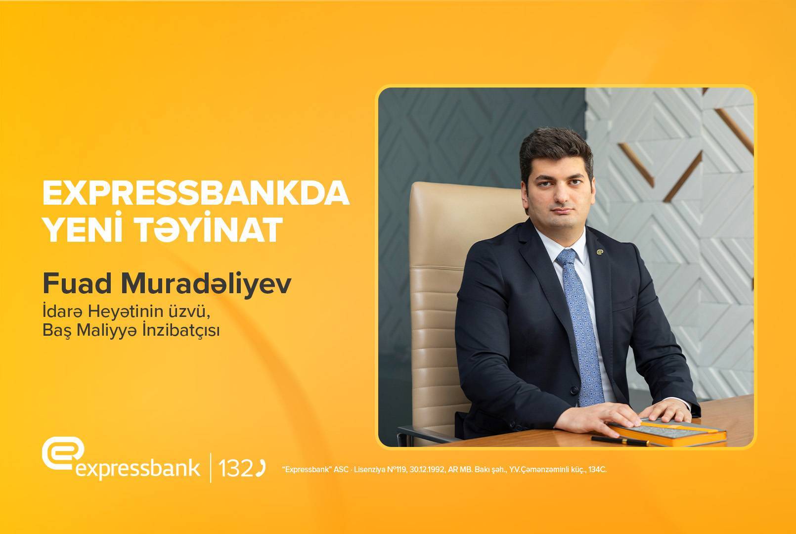 Expressbank ASC-də yeni kadr təyinatı həyata keçirilib. Fuad Fikrət oğlu Muradəliyev bankın İdarə Heyətinin üzvü və Baş maliyyə inzibatçısı (CFO) vəzifəsinə təyin olunub.