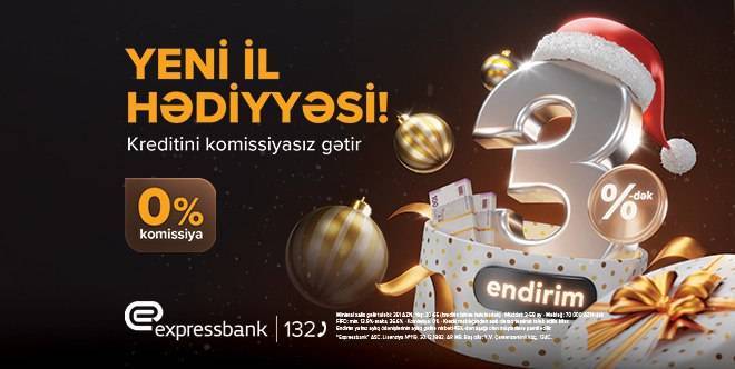 Bankın Banker.az-a verdiyi məlumatda bildirilir ki, yeni kampaniya şərtlərinə əsasən, Expressbankda kredit üzrə illik faiz dərəcəsinə 3%-dək ENDİRİM tətbiq olunur!
