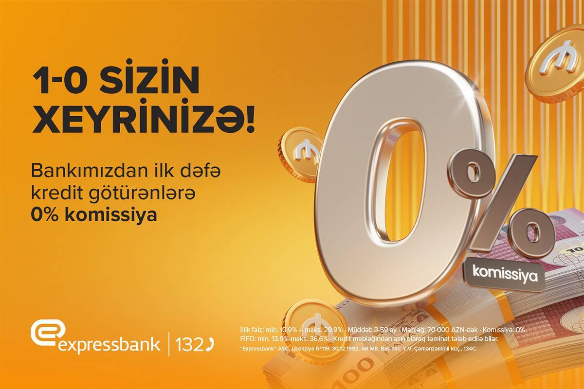 Bankın yeni kredit təklifi çərçivəsində “Expressbank”dan ilk dəfə kredit götürəcək şəxslər heç bir komissiya xərci ödəmədən nağd pul əldə edə biləcəklər.