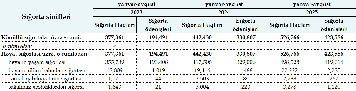 Həyatın yaşam sığortası bazarı illik eyni dinamika ilə yığımlar 498.5 milyon manata, ödənişlər isə 419.9 milyon manata yüksəlsə də, zərərlilik əmsalı 79 faizdən 84% faizə yüksəlib. Bu o deməkdir ki, sığortaçılar üçün cəlb olunan hər 100 manatdan 84 manatı ödənişə yönəldilir. Qalan 16 faiz isə onların əməliyyat xərcləri və mənfəətinə yönəldilib.