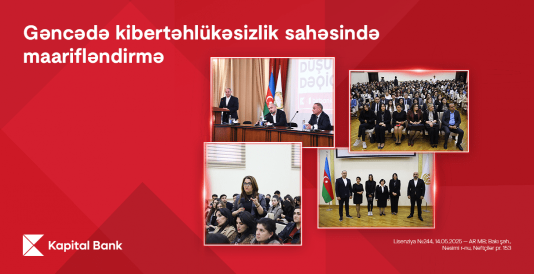 Xatırladaq ki, Kapital Bank tərəfindən həyata keçirilən “Dayan, Düşün, Dəqiqləşdir” kampaniyası çərçivəsində ölkə üzrə maarifləndirici təşəbbüslər həyata keçirilir. Bank təlimlərlə yanaşı, kütləvi informasiya vasitələrində kibertəhlükəsizliklə bağlı press-relizlər, sosial şəbəkələrdə videoçarxlar və posterlər paylaşaraq, vətəndaşların məlumatlılığının artırılmasına dəstək olur.