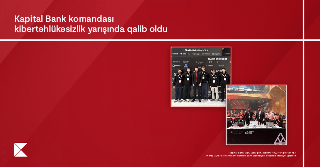 Ölkənin birinci bankı Kapital Bank-ı təmsil edən komanda Bakıda keçirilən və kibertəhlükəsizlik sahəsində regionun ən böyük tədbirlərindən sayılan “CIDC-2025” kibertəhlükəsizlik festivalında böyük əzm nümayiş etdirərək adını qaliblər sırasına yazdırıb. Komanda festival çərçivəsində təşkil olunan “Ağıllı şəhərlərdə kibermüharibə” yarışmasında üçüncülük əldə edib. Banklar arasında ən yüksək nəticə göstərən komanda qazandığı 5000 AZN mükafatı bankın könüllü əməkdaşlarının təşəbbüsü ilə yaradılan “Qırmızı Ürəklər Fonduna” ianə etməklə sosial təşəbbüsə imza atıb.