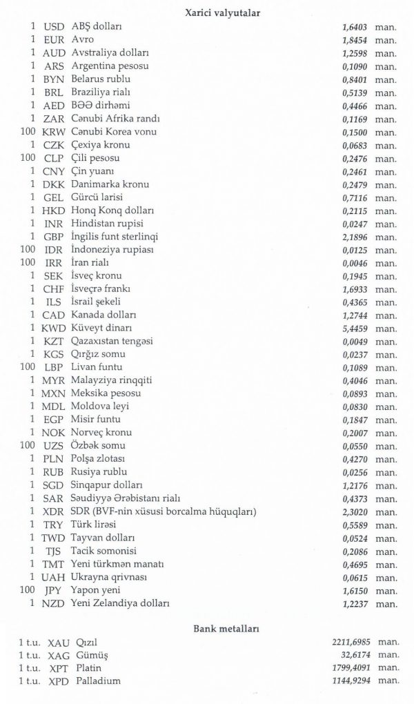 Azərbaycan Mərkəzi Bankı 8 sentyabr tarixinə valyuta məzənnələrini açıqlayıb.