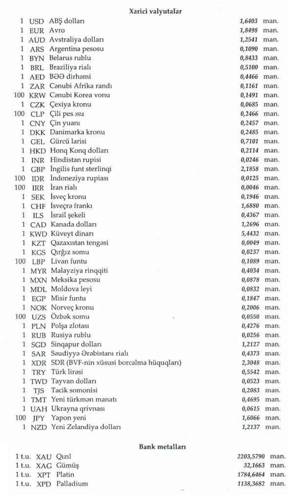 Azərbaycan Mərkəzi Bankı 9 sentyabr tarixinə valyuta məzənnələrini açıqlayıb.