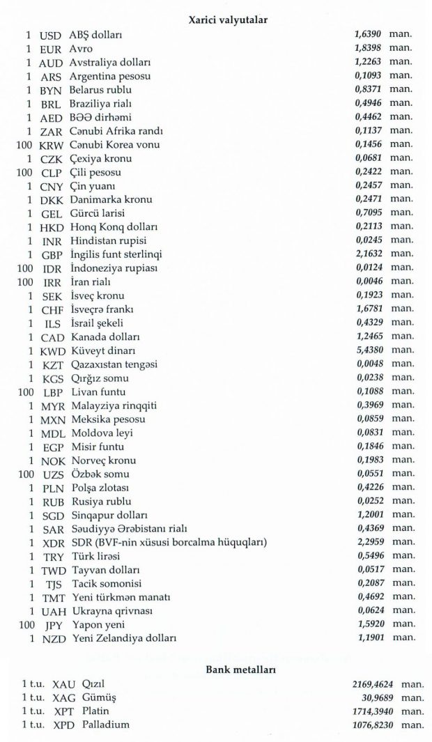 Azərbaycan Mərkəzi Bankı 14 sentyabr tarixinə valyuta məzənnələrini açıqlayıb.