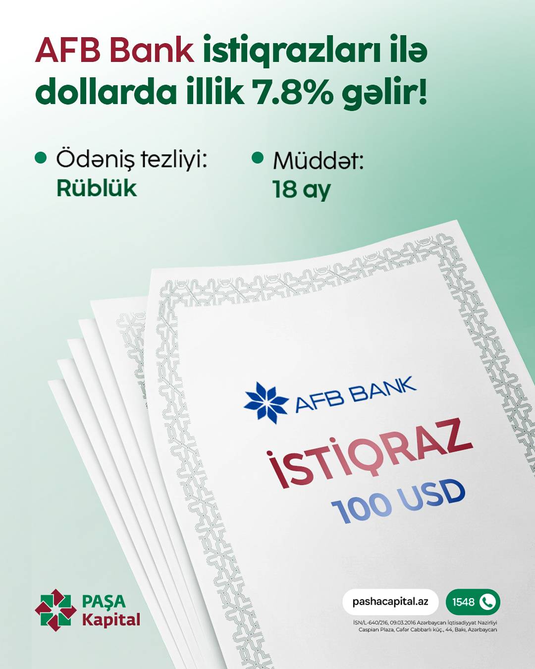 ®Yerli kapital bazarlarının lider investisiya şirkəti PAŞA Kapital, ölkənin bank sektorunda 15 ildən artıqdır ki, geniş xidmət şəbəkəsi ilə fəaliyyət göstərən “AFB Bank” ASC-yə məxsus istiqrazların qapalı yerləşdirilməsinə start verib.