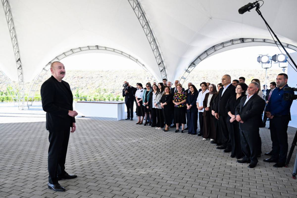 Kənddə yaradılmış şəraitlə tanış olandan sonra dövlətimizin başçısı Məmmədbəyli və Ağalı kəndlərinə köçən sakinlərlə görüşüb, onlara mənzillərin açarlarını təqdim edib.