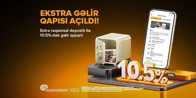 Banker.az xəbər verir ki, Expressbank “Extra” rəqəmsal depozit məhsulunu müştərilərinin istifadəsinə verib. Belə ki, indi Expressbankın cari müştəriləri “Express24” tətbiqi üzərindən minimum 50 AZN-dən başlayaraq depozit yerləşdirməklə 24 ayadək müddətdə 10,5 %-dən gəlir əldə edə bilərlər.