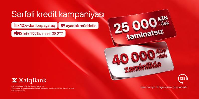 ®Xalq Bank müştərilər üçün rahat və sərfəli maliyyə imkanları təqdim etmək məqsədilə yeni istehlak krediti kampaniyasına start verir. Sərfəli şərtlər müştərilərə müxtəlif istehlak təyinatlı xərclərini əlavə maliyyə yükü olmadan planlaşdırmağa imkan verir.