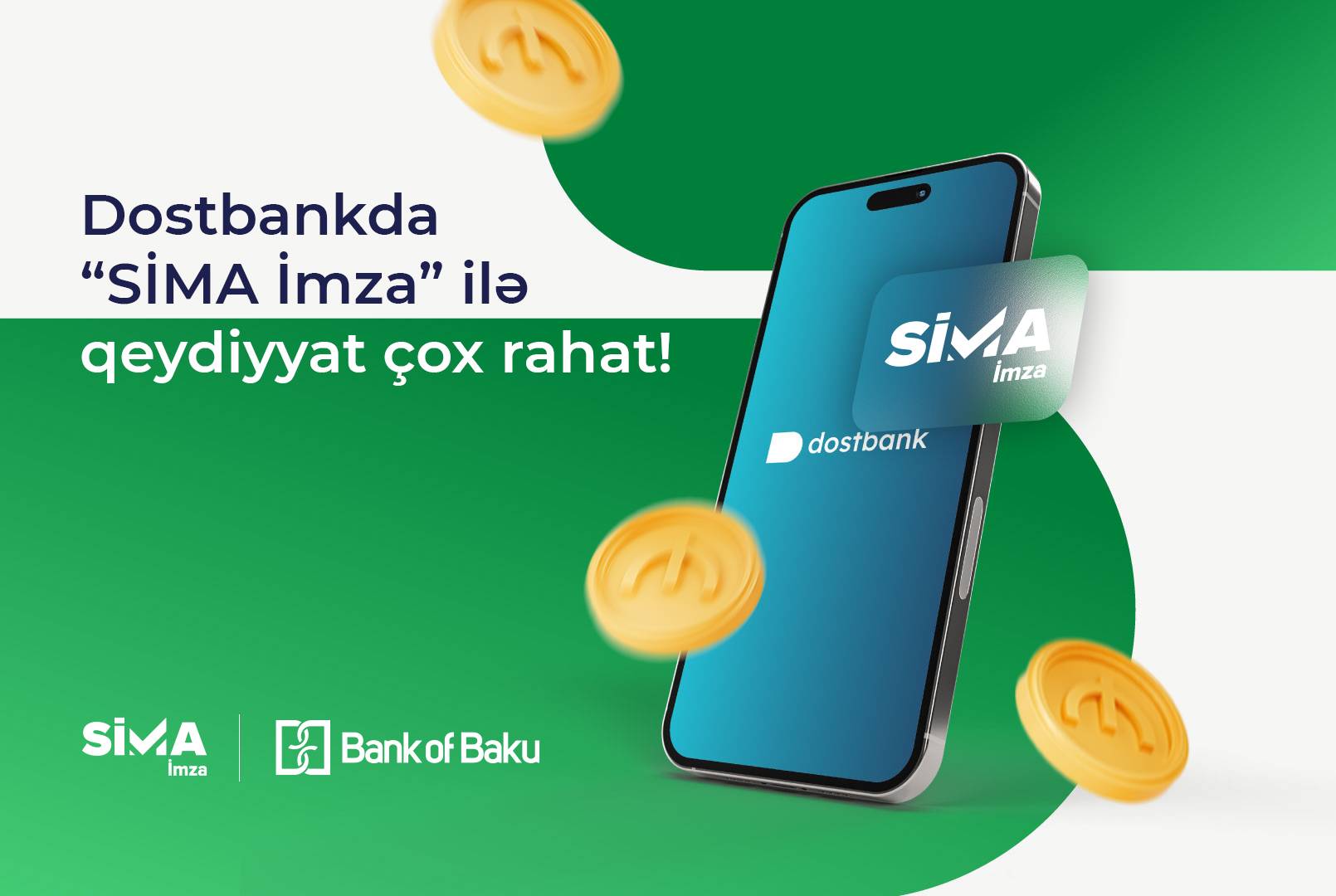 “AzInTelecom” tərəfindən yaradılmış SİMA yeni nəsil rəqəmsal imza “Bank of Baku”ya məxsus “Dostbank” mobil tətbiqinə inteqrasiya edilib. Artıq “Bank of Baku” müştəriləri “Dostbank” mobil tətbiqində identifikasiya prosesini “SİMA İmza” ilə tamamlayaraq sürətli şəkildə qeydiyyatdan keçə bilərlər.