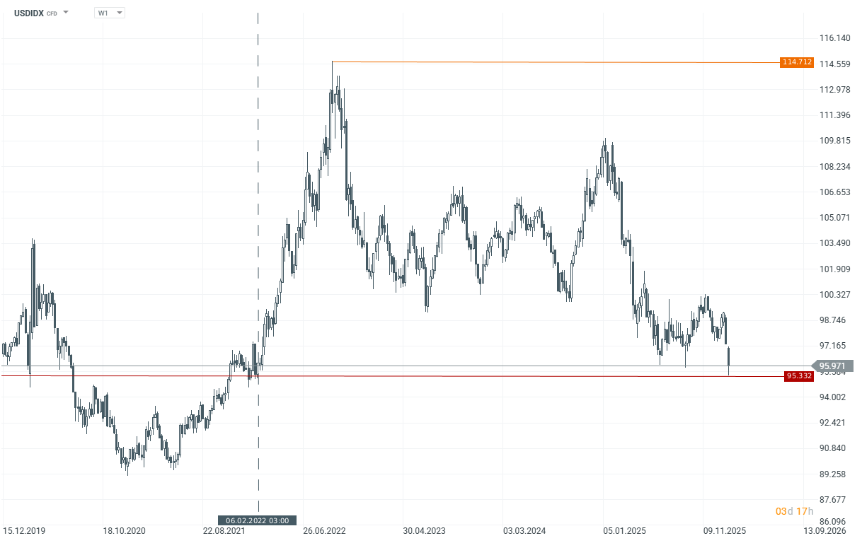 Banker.az xəbər verir ki, Trampın dolların “həddindən artıq zəifləmədiyini” deməsindən sonra ABŞ valyutası ötən il tariflərin tətbiqindən bəri ən kəskin birgünlük ucuzlaşmanı yaşadı. ABŞ dollarının altı əsas valyuta səbəti qarşısında ölçülən indeksi DXY dünən təqribən 1.8 faizə yaxın geriləyərək 95.33 bəndə düşüb. Yerigəlmişkən, bu səviyyə 2022-ci ildəki Rusiya-Ukrayna müharibəsindən sonra ən aşağı səviyyədir. “Bloomberg”in dollar indeksi isə 1.2%-ə qədər gerilədi ki, bu da dolların və ABŞ xəzinə istiqrazlarının cəlbediciliyini azaldır.