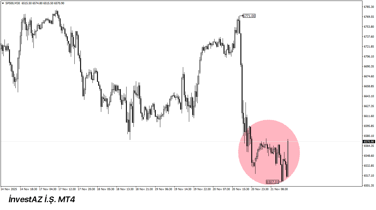 NASDAQ-100 oktyabr rekordundan bəri 7,9% geriləyib. İndeksin əsas çəkisi olan “Nvidia” 3,2% dəyər itirərək günlük maksimumundan 400 milyard dollara yaxın kapitalizasiya silib. S&P 500 isə sentyabrdan bəri ən aşağı səviyyədə bağlanıb və ilk dəfə 100 günlük orta göstəricinin altına düşüb. Riskli aktivlərdə satışlar güclənib: qısa mövqelərin üstünlük təşkil etdiyi səhmlər 3,5%, zərərli texnoloji şirkətlər 3,7% geriləyib. 5000 kiçik şirkətin səhmlərini ölçən “Russell Microcap”in ümumi itkisi 10%-ə çatıb.