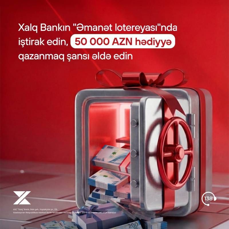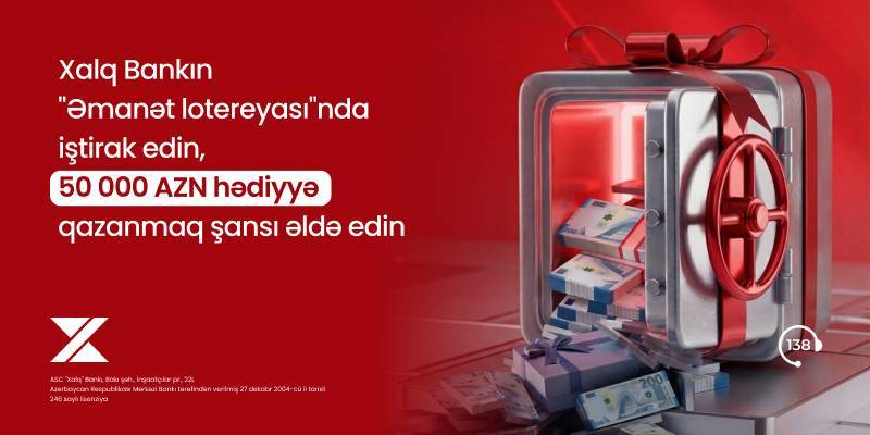 ®Ölkənin aparıcı banklarından olan Xalq Bank əmanət yerləşdirən müştərilər üçün stimullaşdırıcı “Əmanət” lotereyasına start verir. Şərtlərə əsasən, 1 aprel – 30 dekabr 2026-cı il tarixlərdə Xalq Bankın Bakı və Sumqayıt şəhərlərində yerləşən filiallarında minimum 500 AZN / 300 USD, digər regionlarda yerləşən filiallarda isə minimum 250 AZN / 150 USD məbləğində əmanət yerləşdirən müştərilər lotereyada iştirak etmək şansı əldə edirlər.