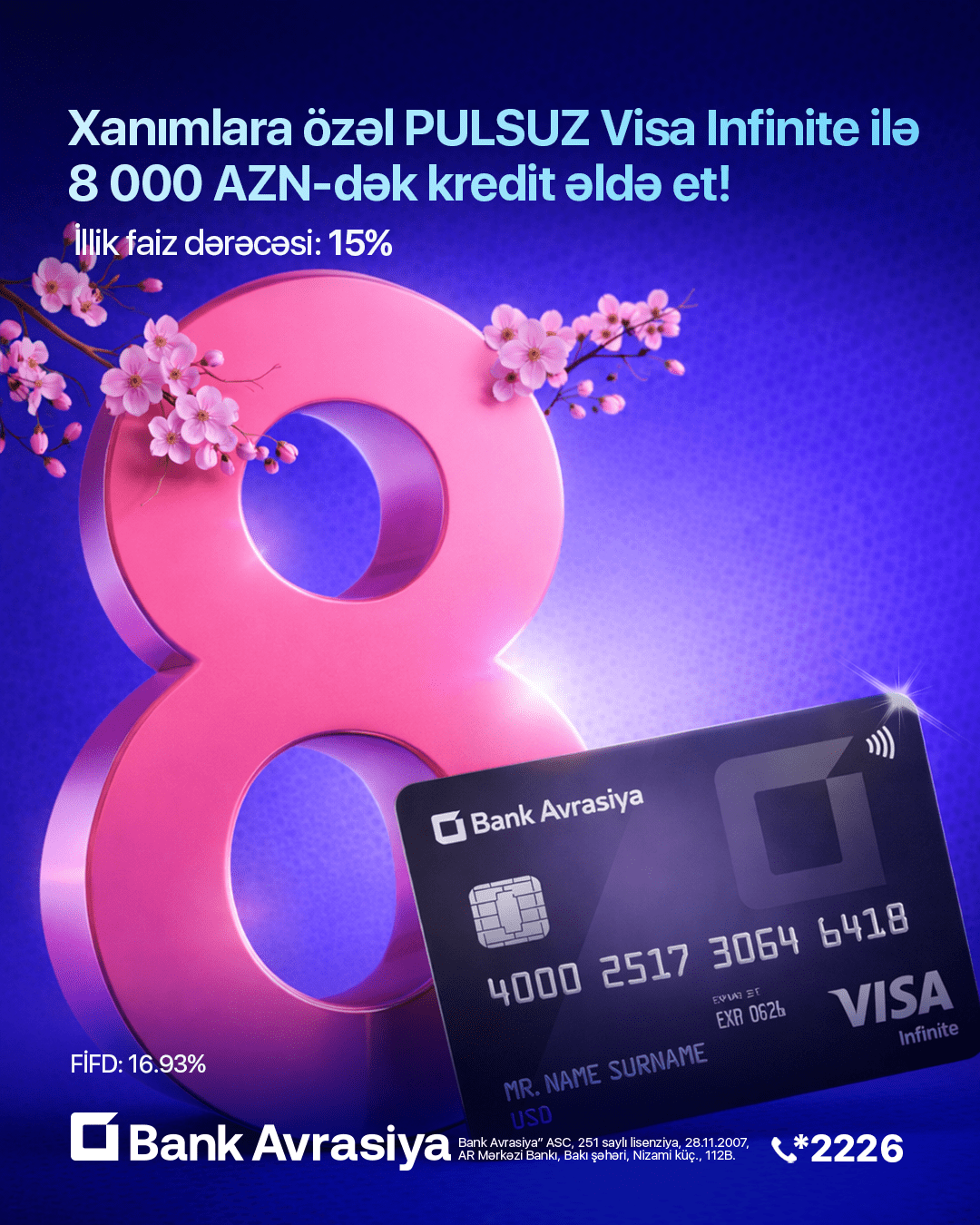 ®“Bank Avrasiya” ASC 8 Mart – Beynəlxalq Qadınlar Günü münasibətilə xanım müştərilər üçün xüsusi kampaniya təqdim edir.