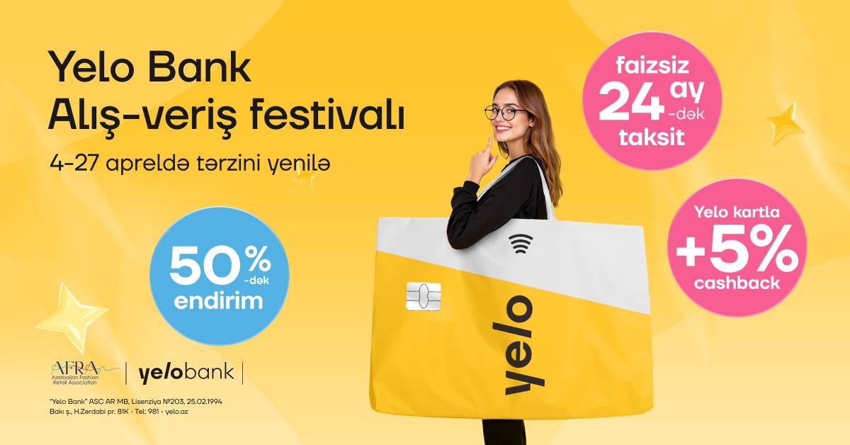 Festival çərçivəsində əsas alış-veriş mərkəzləri və bir çox mağazalarda sevdiyiniz brendlərin 50%-dək endirimlərindən faydalana biləcəksiniz. Yelo Bank-ın kart məhsulları bu festivalı daha da sərfəli edir! Belə ki, Yelo kartları ilə alış-veriş etdikdə 5% cashback, Yelo taksit kartı ilə isə 24 ayadək faizsiz taksit imkanı əldə edirsiniz. Yelo kartlarında qalıq məbləğə illik gəlir, yüksək cashback, komissiyasız nağdlaşdırma və köçürmələr, eləcə də Apple Pay və Google Pay kimi funksiyalar istifadəçilərin gündəlik xərclərini daha rahat idarə etməyə imkan verir. Yelo kartı olmayanlar isə Yelo App vasitəsilə onlayn sifariş edib, kartlarını ünvanlarına pulsuz çatdırılma ilə əldə edə bilərlər. Qeyd edək ki, festival Pərakəndə Geyim İdxalçıları Assosiasiyasının birgə təşəbbüsü ilə keçirilir.