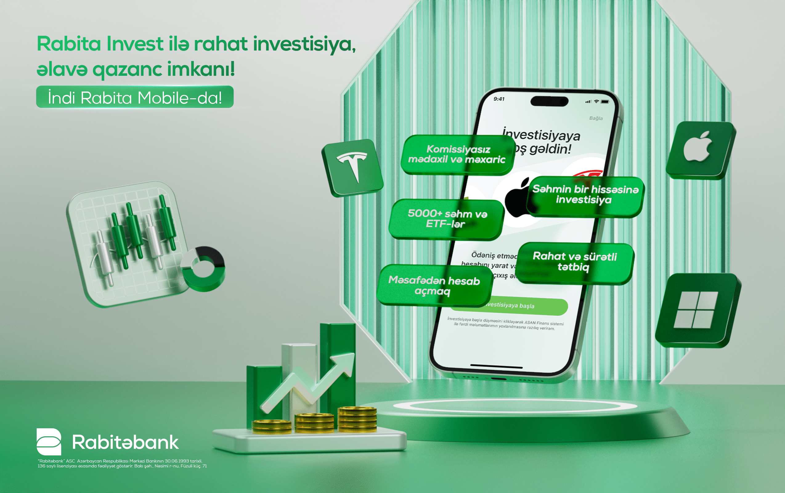 Siz də Rabita Mobile tətbiqini yükləyin, Rabita Invest xidmətindən faydalanın və gəlir gətirən qərarlarınızı bu gündən verin.